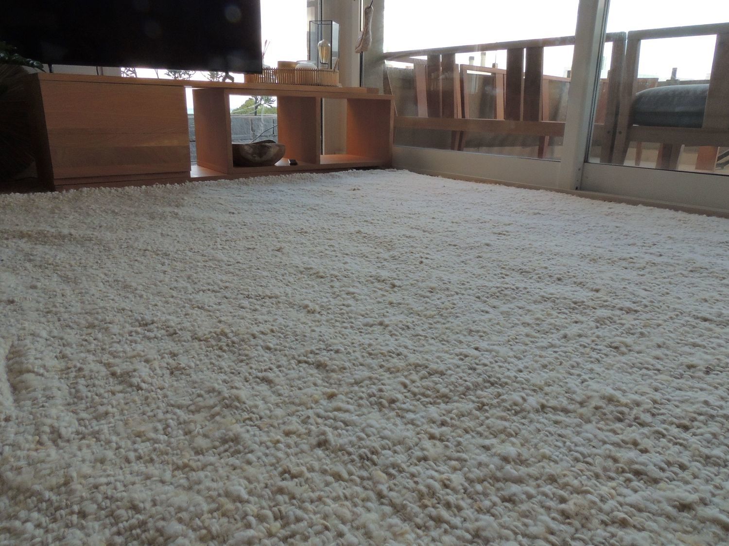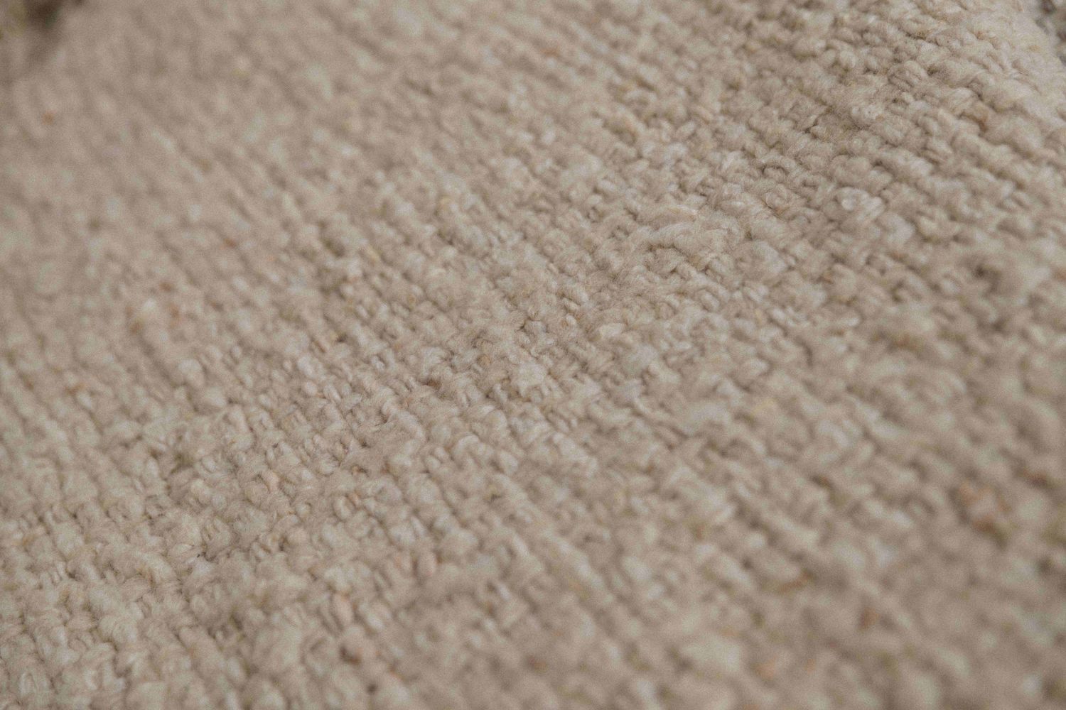 Alfombra tejida a mano con técnicas tradicionales en lana cruda. Hecha en pura lana de oveja con proceso manual desde la esquila hasta la pieza final. Diseño en color natural con terminación con o sin flecos.